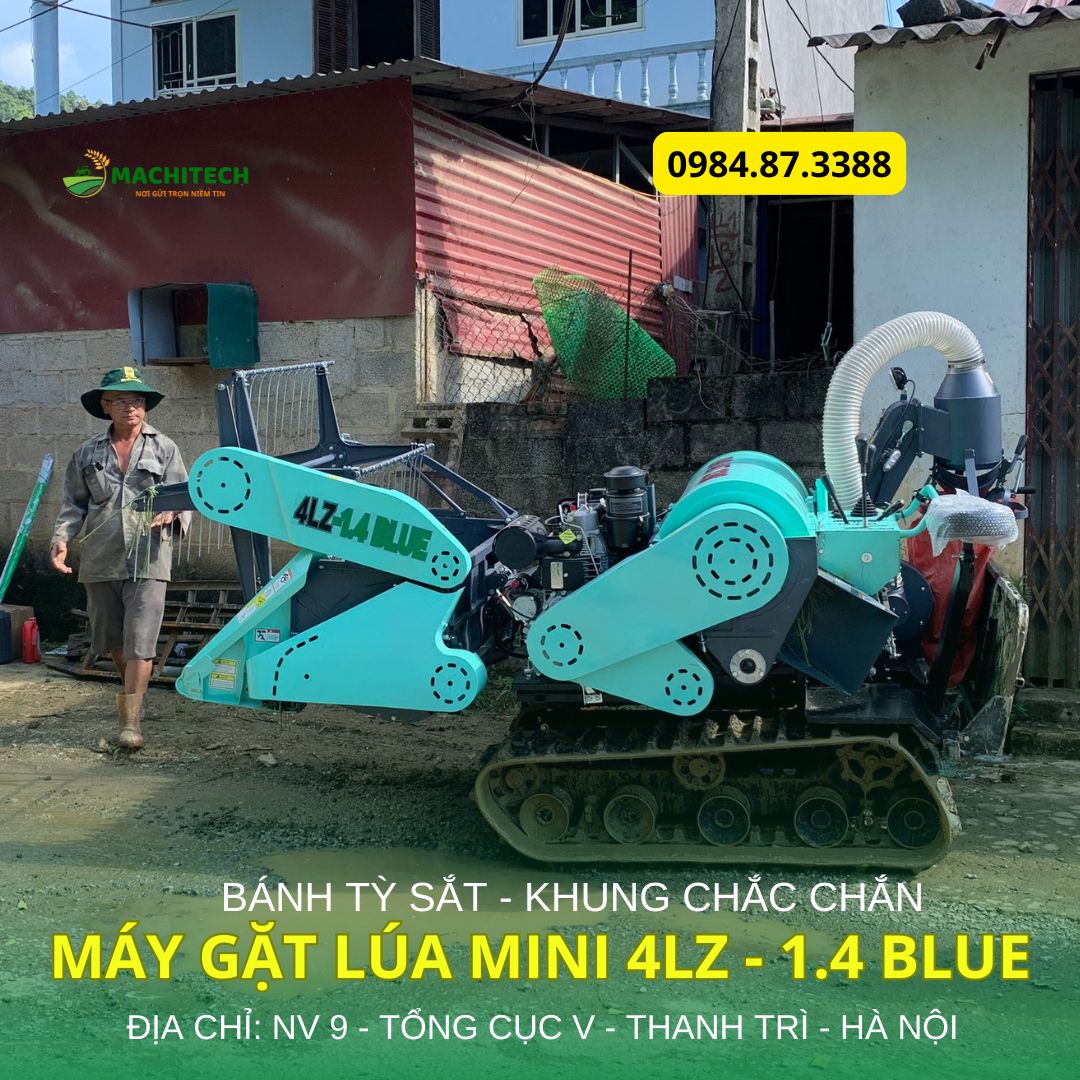 Máy gặt lúa mini 1.4 Blue chuyên ruộng đồi núi giao về Na Hang - Tuyên Quang