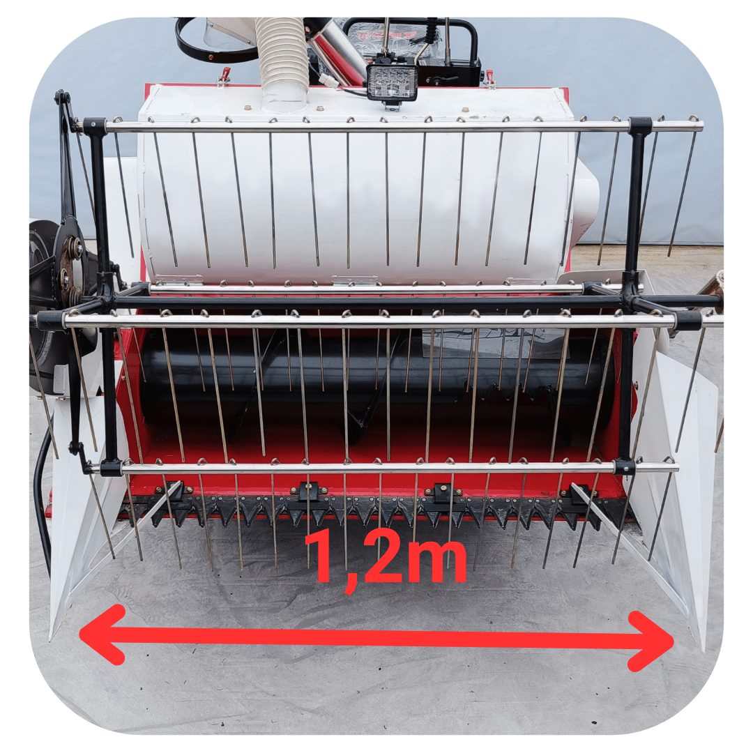 Công Suất Mạnh Mẽ: Động cơ 1100 FE mạnh mẽ của máy gặt này đảm bảo hiệu suất thu hoạch lúa mạnh mẽ vượt mọi địa hình phức tạp, giúp nông dân hoàn thành công việc một cách dễ dàng và hiệu quả, tải được 300-400kg (4bao và 1 người lái)